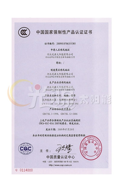 中國(guó)國(guó)家強(qiáng)制性認(rèn)證證書
