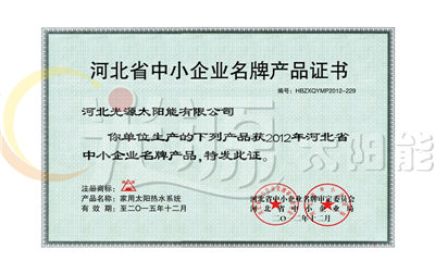 中小企業(yè)名牌產(chǎn)品證書