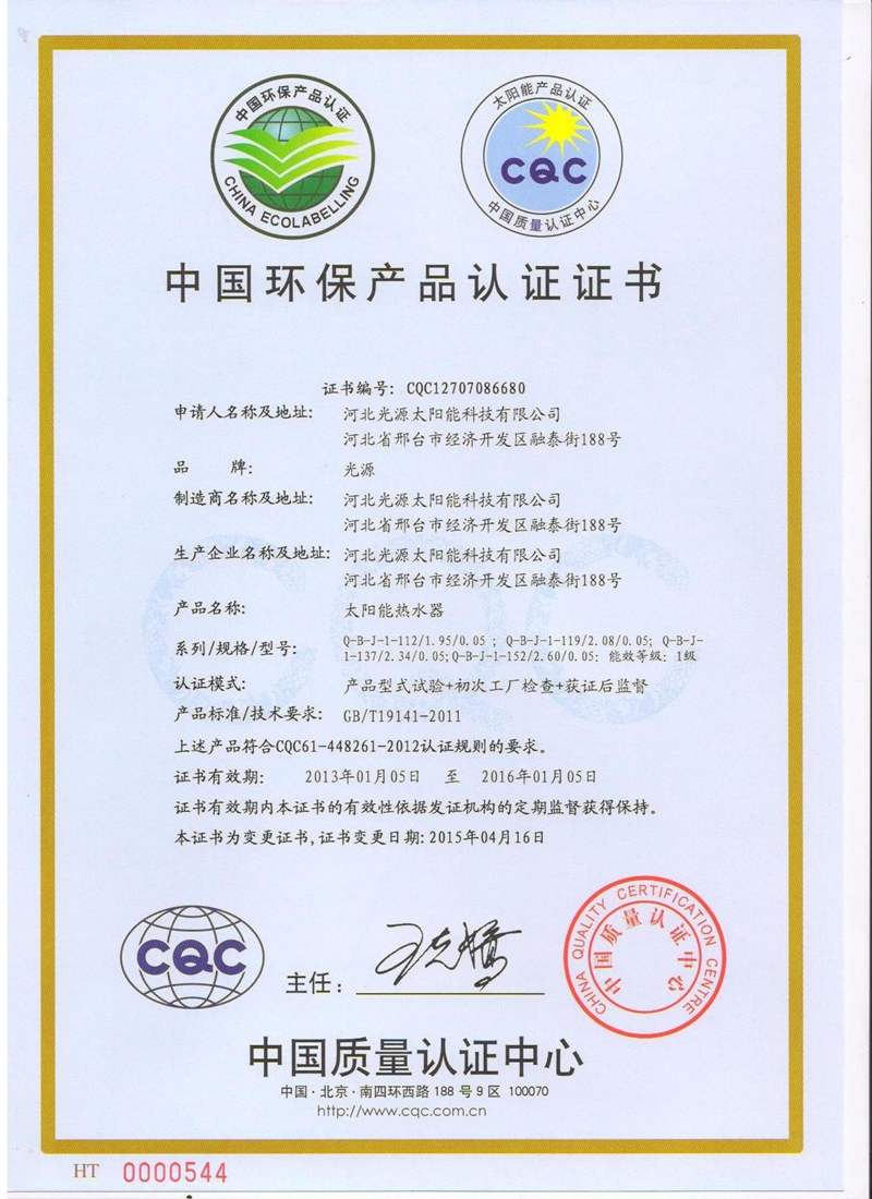 中國(guó)環(huán)保產(chǎn)品認(rèn)證證書
