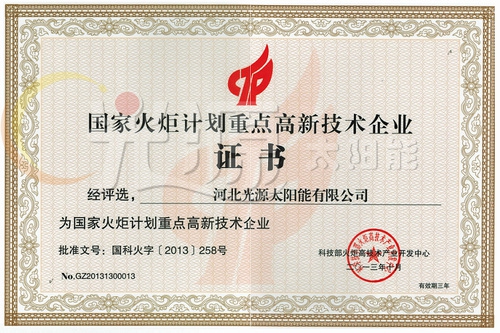 國家火炬計(jì)劃重點(diǎn)高新技術(shù)企業(yè)證書