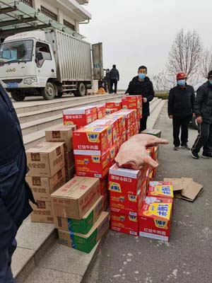 突如其來的新冠肺炎疫情襲擊了邢臺,建設(shè)隔離點(diǎn)成了一項(xiàng)重要任務(wù),建設(shè)工人24小時(shí)晝夜不停施工。光源太陽能董事長李成彬得到這一信息,立即派光源黨支部書記李友民、副總經(jīng)理李楊,攜帶價(jià)值1.5萬元的方便面、火腿腸、榨菜、生鮮豬肉,到醫(yī)專和醫(yī)養(yǎng)中心隔離點(diǎn)建設(shè)一線,慰問一線建設(shè)工人。