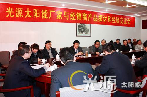 次日上午9點30分,光源太陽能經(jīng)銷商代表與該公司各部門代表舉行了座談會。座談會上,大家暢所欲言,提出產(chǎn)品在研發(fā)、生產(chǎn)、銷售、售后等各環(huán)節(jié)的意見和建議,使各部門更深一步地了解一線市場信息,傾聽經(jīng)銷商的心聲和呼聲,有針對性地做好生產(chǎn)、技術(shù)、物流、宣傳、促銷等工作。