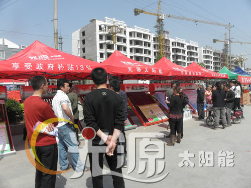廣場的一側(cè),光源銀月亮、浴美人系列太陽能列隊(duì)排開,漂亮的機(jī)型,明碼標(biāo)價(jià)的質(zhì)優(yōu)價(jià)廉產(chǎn)品,吸引了廣大老百姓駐足凝神觀看!實(shí)實(shí)在在的優(yōu)惠政策,在加上工作人員耐心細(xì)致的講解,廣大老百姓紛紛踴躍定機(jī)!