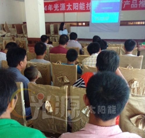 2014年8月20日河南夏邑縣光源太陽(yáng)能技術(shù)培訓(xùn)及產(chǎn)品推介會(huì)隆重召開。本次會(huì)議圍繞“互聯(lián)網(wǎng)時(shí)代話光源招商之饑餓營(yíng)銷”為切入點(diǎn)進(jìn)行了為時(shí)90分鐘的培訓(xùn)。