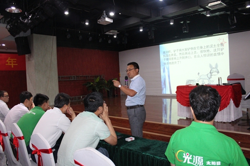 6月18日-19日,光源太陽能舉辦了2015年以來的第一期營銷人員培訓(xùn)會(huì)隆重召開。公司總經(jīng)理劉迎波、副總經(jīng)理李冰、公司市場服務(wù)中心、市場部各職能部門以及各區(qū)域銷售精英共50余人參加了此次會(huì)議。