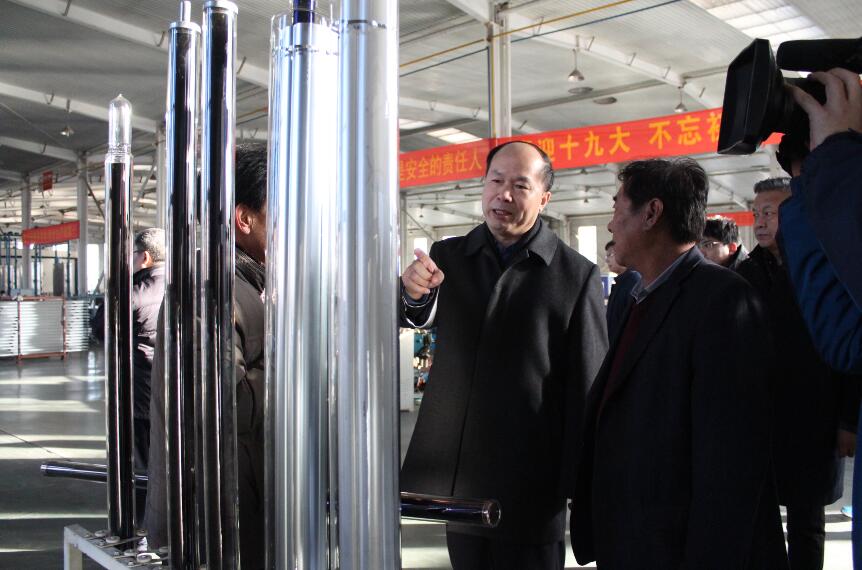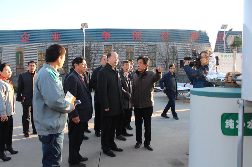 1月8日,在邢臺市委書記王會勇帶領下,邢臺市及開發(fā)區(qū)有關負責同志,來到河北光源太陽能科技有限公司,就太陽能光熱產品的制造工藝、產品性能及新能源項目實施等工作進行了深入了解和考察。