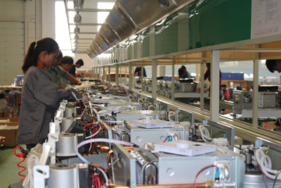 生產(chǎn)車間:不斷改進工藝,合理安排人員,逐步提高生產(chǎn)效率,電鍋爐日生產(chǎn)能力由150臺提高到了400臺。壁掛爐日產(chǎn)可達300臺。