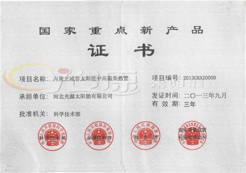 國家重點(diǎn)新產(chǎn)品證書
